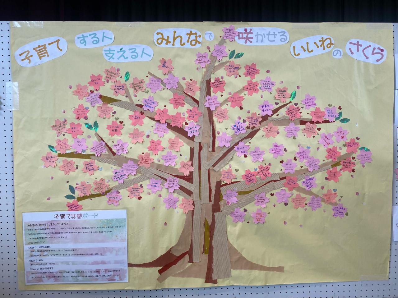 先日行われた、ゆめ!さくら博&福祉まつりの当センターブースでは、「子育て共感ボード」を設置し、多くの皆様にご参加いただきました。子育てに関する想いや共感の言葉を数多くお寄せいただき、素敵なボードが完成しました。